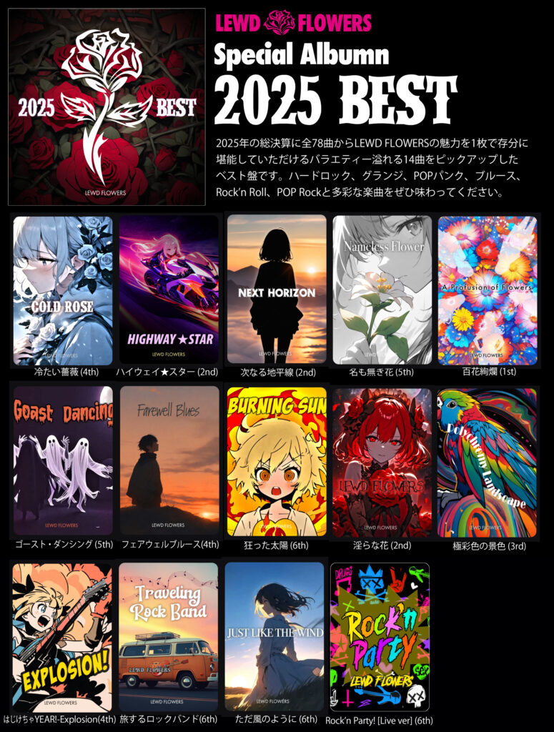 LEWD FLOWERSの全曲は、各配信サイトでフル視聴いただけます。