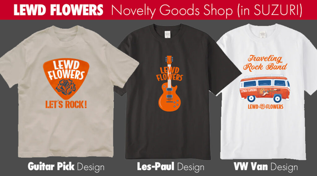 LEWD FLOWERSのTシャツをSuzuriにてご提供開始しました。ヘビーウエイトやビッグシルエットTシャツや長袖などのアイテムを3種類のデザインで販売中です。
