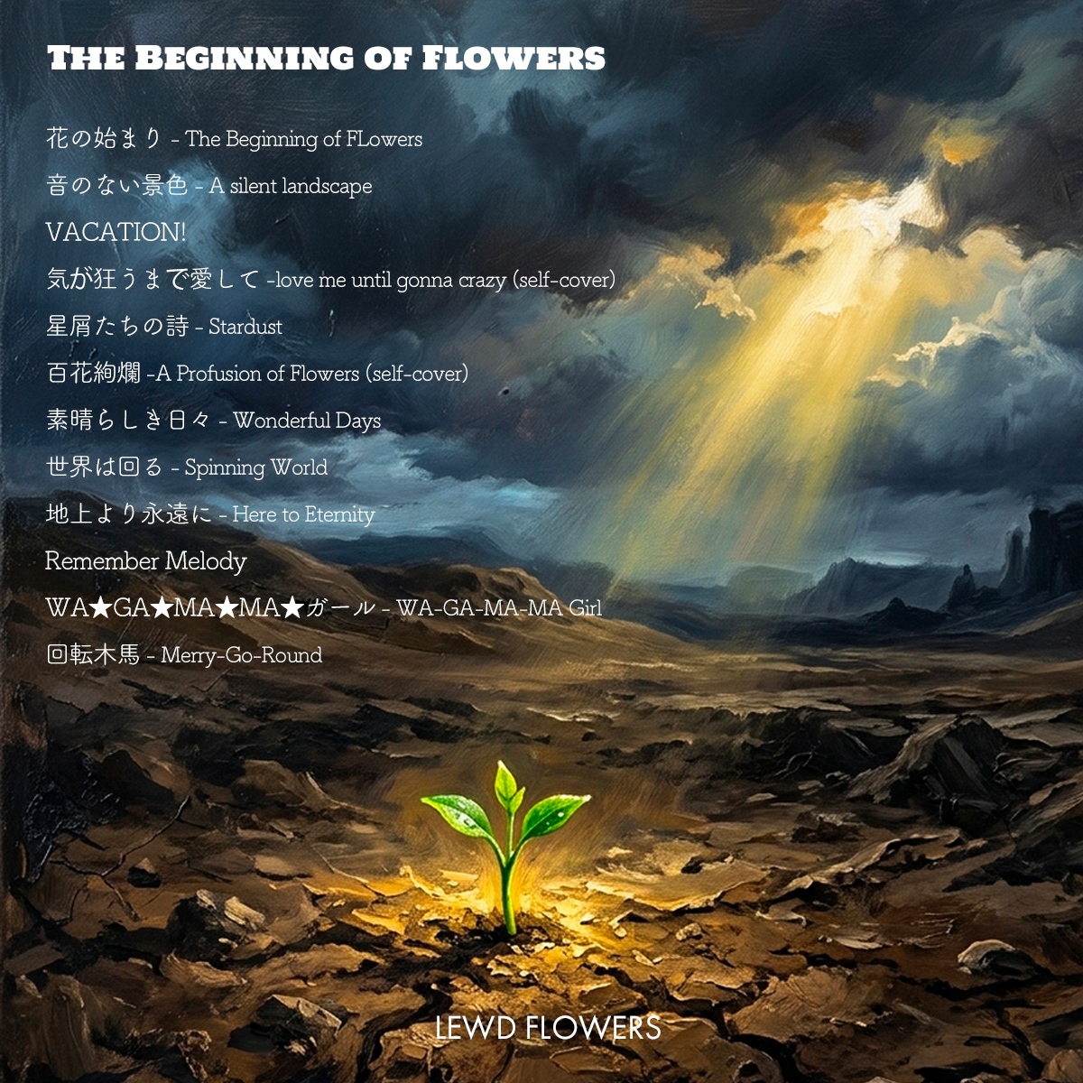 英語&日本語詩のハイブリッドナンバー第4弾は、今時は誰も作らない(?)、LEWD FLOWERSには珍しい『キラキラ希望に輝くPop Rockの王道ソング』です。